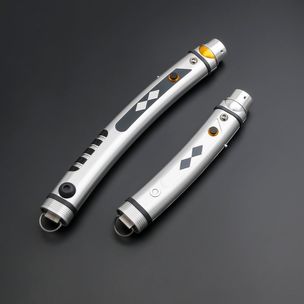 The Ahsoka saber recreates the elegant, curved-hilt design used by Ahsoka Tano during her days as a wandering protector. Sleek, graceful, and distinctively her own, this weapon is perfect for duelists seeking speed, precision, and individuality.