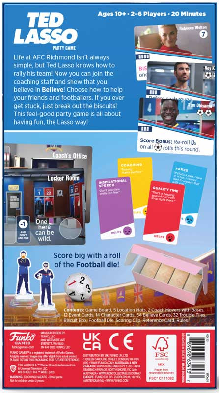 Step into the world of AFC Richmond and experience the heart, humour, and positivity of Ted Lasso in this feel-good cooperative party game! Life at the club isn’t always simple, but with teamwork, clever quips, and a little belief, you can help rally the team to victory – the Lasso Way!