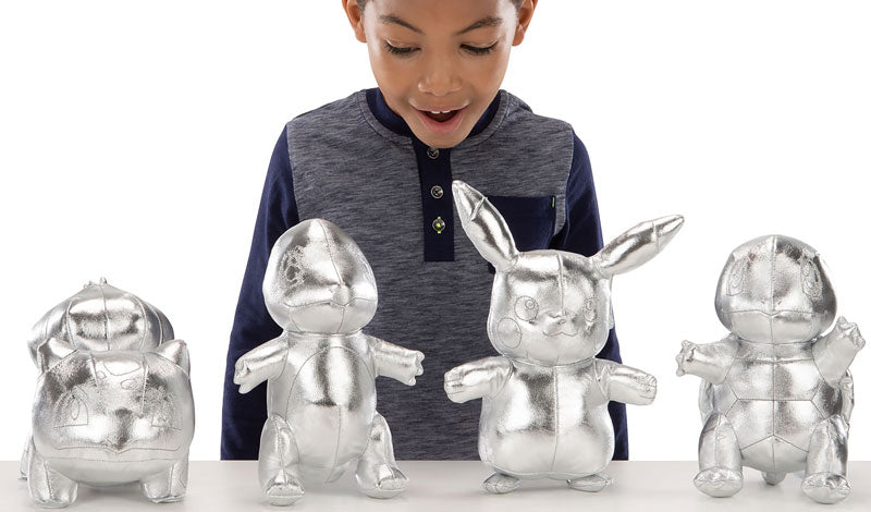 Celebrate the 25th Anniversary of Pokémon with this special collection of 8 Inch Anniversary Silver Plush! Assortment includes Pikachu, Squirtle, Bulbasaur and Charmander - 4 of the most popular Pokémon ever! With incredible detail they looks like they’ve jumped right from the Pokémon Animated Series.This collection of 8 inch Silver plush are ready to celebrate 25 years of Pokémon with you and make the perfect gift for Pokémon fans of all ages! Can you collect them all? Gotta Catch ‘Em All!™ An Officially licensed Pokémon product! Suitable from 2 years.