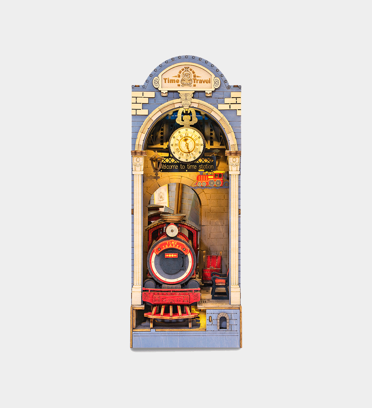 Time Travel is one of products of Book Nook series of Rolife. With the theme of time travel, it has a vintage train model and a platform in the scene . Meanwhile, as a creative and elaborately-designed book nook, it can make your bookshelf more stylish and interesting.