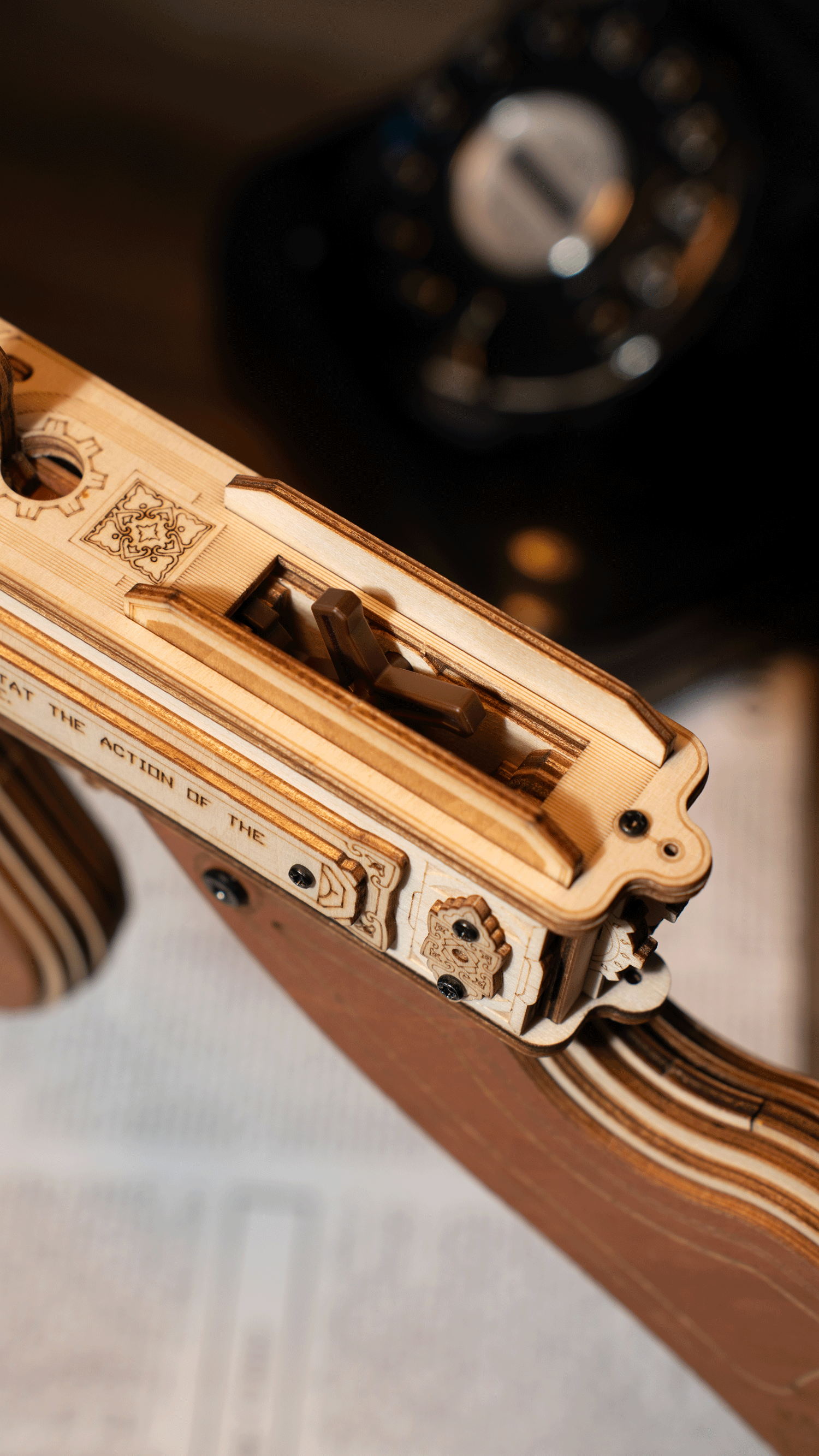 Experience the thrill of a submachine gun firing with the ROKR Thompson Wooden Toy Gun. When shooting, paper shells will eject constantly, simulating the firing scene. *This toy gun is intended solely for play, ensuring safety and harmlessness.